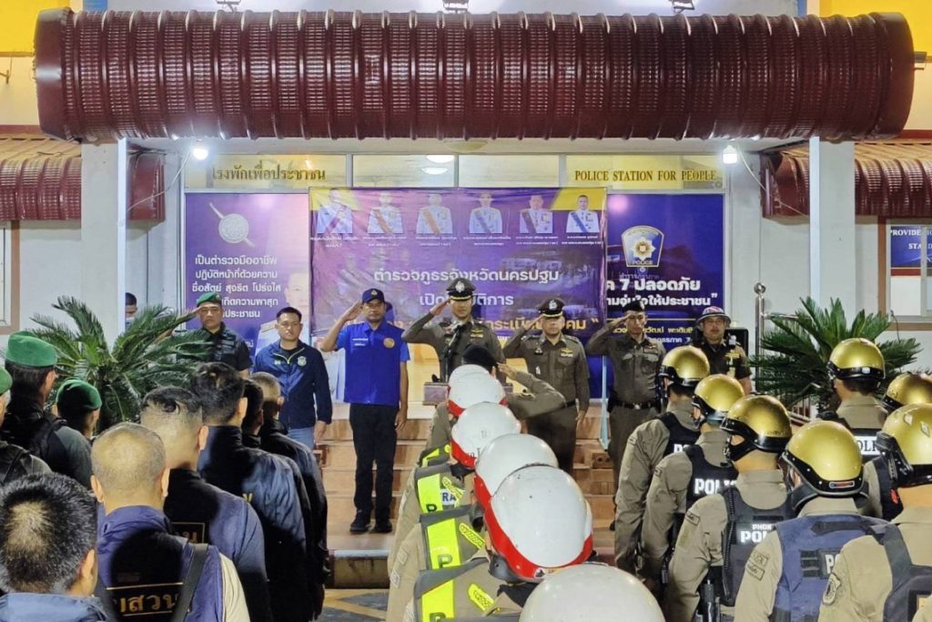 ตำรวจโพธิ์แก้ว เปิดปฎิบัติการ “ ปิดเมือง สยบแว้น จัดระเบียบสังคม ”วันศุกร์ที่ 29 พฤศจิกายน 2567 เวลา 20.00 น.ที่บริเวณหน้าอาคารที่ทำการ สถานีตำรวจภูธรโพธิ์แก้ว จังหวัดนครปฐม ภายใต้การอำนวยการสั่งการของ พล.ต.ท.นัยวัฒน์ เผดิมชิต ผบช.ภ.7 พล.ต.ต.ชมชวิณ ปุระธนานนท์ รอง ผบช.ภ.7(สส) พล.ต.ต.พิพัฒน์ ชุ่มมณีกูล รอง ผบช.ภ.7 (ปป) พล.ต.ต.ประสพชัย มัตสยะวนิชกูล ผบก.สส.ภ.7 พล.ต.ต.สุวรรณ์ เชี่ยวนาวินธวัช ผบก.ภ.จว.นครปฐม มอบหมายให้ พ.ต.อ.พงษกร อุปพงษ์ รอง ผบก.ภ.จว.นครปฐม(ปป)พร้อมด้วย พ.ต.อ.อิทธิพล พรเทวบัญชา ผกก.สส.ภ.จว.นครปฐม พ.ต.อ.จักรพงศ์ ตราบดี ผกก.สภ.เขาดิน รรทผกก.สภ.โพธิ์แก้ว พ.ต.ท.โสภณ พุ่มกุมาร รอง ผกก.ป.สภ.โพธิ์แก้ว พ.ต.ท.ธนากร ภูริกวินเลิศ รอง ผกก.สส.สภ.โพธิ์แก้ว นายอรรนพ โคกาอินทร์ ปลัดอำเภอหัวหน้าฝ่ายความมั่นคงอำเภอสามพรานสนธิกำลังร่วมกับเจ้าหน้าที่ตำรวจ สภ.โพธิ์แก้ว เจ้าหน้าที่ตำรวจกก.สส.ภ.จว.นครปฐม เจ้าหน้าที่ฝ่ายปกครอง อาสาสมัครอำเภอสามพราน เจ้าหน้าที่อาสาสมัครมูลนิธิร่วมกตัญญู รวมจำนวน 60 นาย ปล่อยแถวเปิดปฎิบัติการ “ปิดเมือง สยบแว้น จัดระเบียบสังคม ” ออกตั้งจุดตรวจจุดสกัดปิดล้อมพื้นที่ สภ.โพธิ์แก้ว เพื่อทำการตรวจค้นรถและบุคคลต้องสงสัยลักษณะเด็กแว้น เน้นการจับกุมอาวุธปืน ความผิดพรบ.ยาเสพติด และ ความผิดตามกฎหมายอื่นๆ ทั้งนี้เป็นการป้องกันและปราบปรามอาชญากรรมและการรวมตัวของเด็กแว้น เพื่อให้เกิดความผาสุกแก่ประชาชนในพื้นที่ ณ.บริเวณหน้าอาคารที่ทำการ สถานีตำรวจภูธรโพธิ์แก้ว อำเภอสามพรานจังหวัดนครปฐม