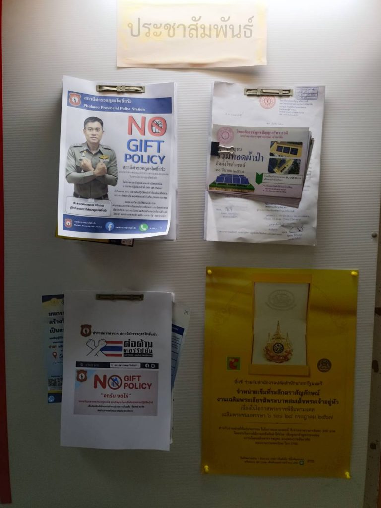 ๑. ห้ามมิให้ข้าราชการตำรวจในสังกัดสถานีตำรวจภูธรโพธิ์แก้วทุกนาย เข้าไปมีส่วน เกี่ยวข้องในการให้ หรือรับสินบนทุกรูปแบบไม่ว่าทางตรงหรือทางอ้อม