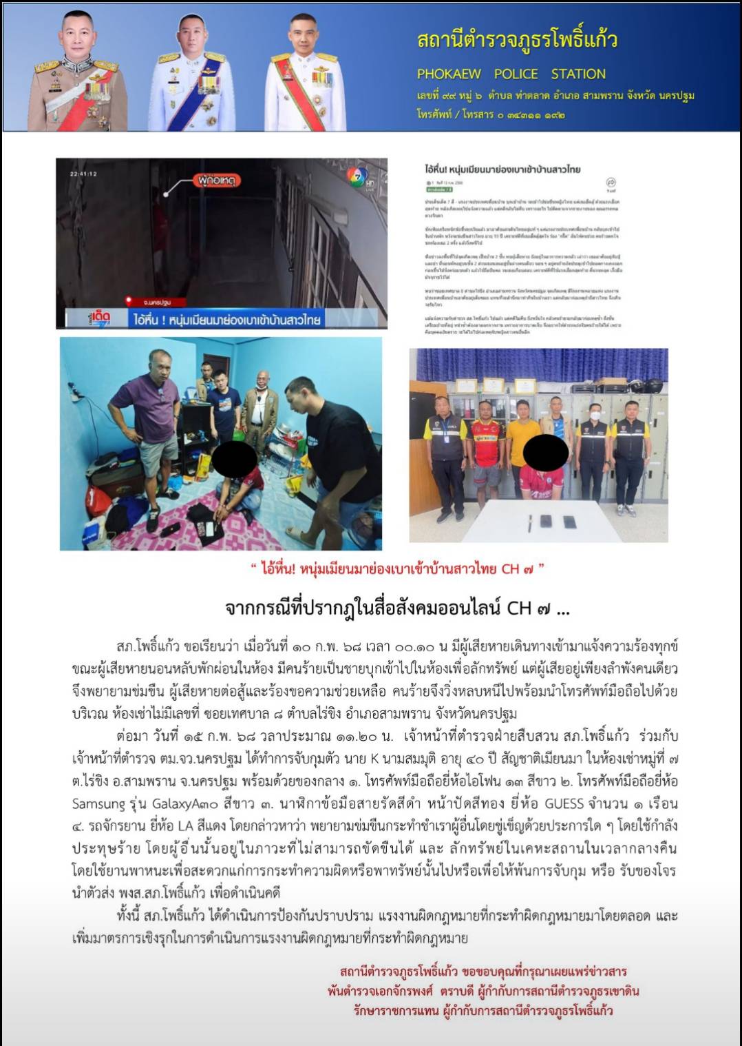 แถลงข่าว ไอ้หื่น หนุ่มเมียนมาย่องเบาเข้าบ้านสาวไทย CH7